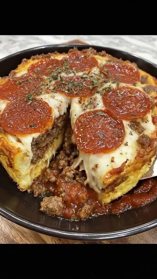 This Bisquick Impossible Pizza Pie brings together rich seasoned ground beef, sautéed onions, pepperoni, and marinara sauce in tasty layers. The addition of Bisquick, eggs, and milk forms a tender, slightly crisp crust above and below the beef and melted mozzarella cheese. Baked until golden and bubbly, this dish is ideal for anyone craving the flavors of pizza without traditional dough. It’s simple to prepare in just over 30 minutes and makes a comforting hot dinner. Custom toppings such as extra pepperoni or different cheeses can be added before baking for even more flavor.