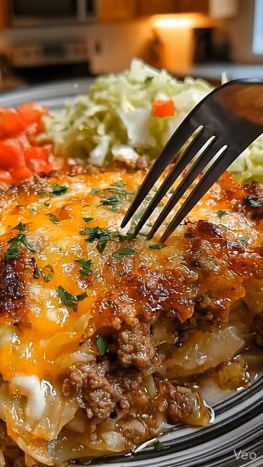 Cabbage Beef Bake is a cozy, oven-baked casserole featuring seasoned ground beef, tender cabbage, juicy tomatoes, and rice, all topped with melted cheddar cheese. Hearty, wholesome, and easy to make, it’s the perfect comfort meal for busy weeknights or relaxed weekends.