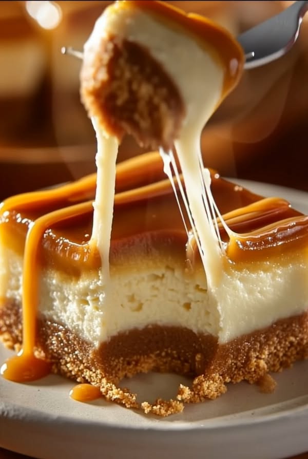 Indulge in these dreamy Creamy Caramel Cheesecake Bars that are sure to satisfy your sweet tooth! Perfect for any occasion.