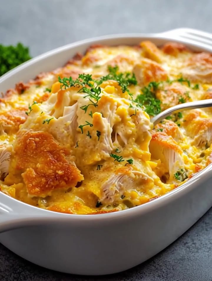 A heartwarming creamy chicken breakfast bake that’s easy to make and perfect for any morning.