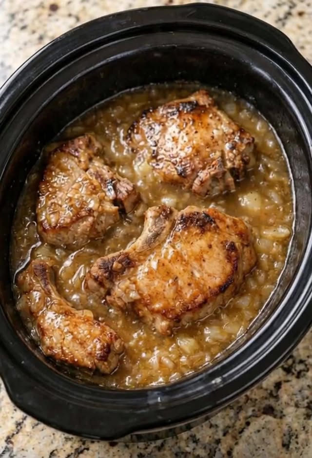 • Cook: Cover and cook on low for 4–6 hours, or until the pork chops are tender.