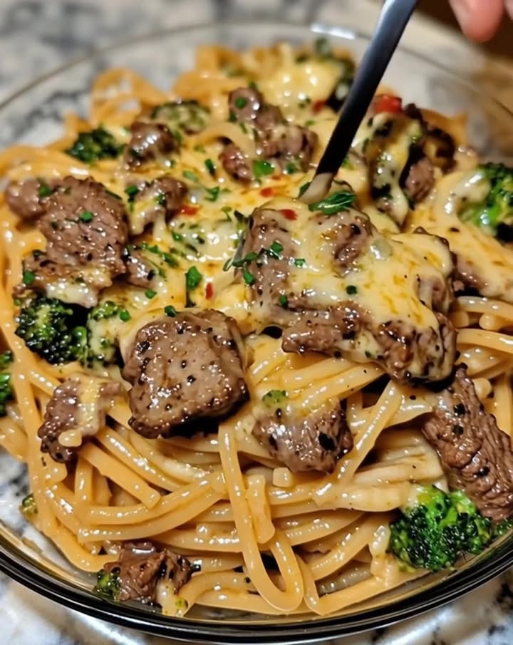 This Creamy Garlic Parmesan Penne with Steak, Broccoli & Bell Peppers is a comfort meal ready in 30 minutes.
