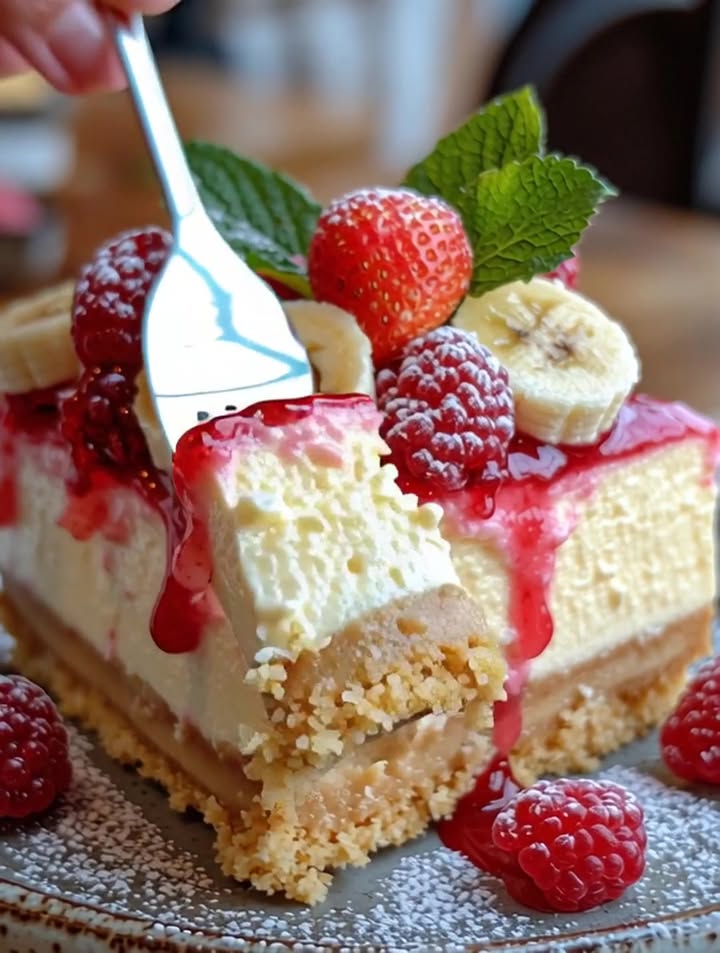 Irresistible Lemon Cheesecake Cream with Strawberry-Banana Bliss