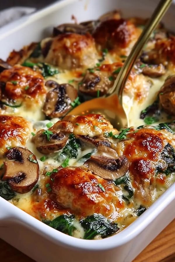 Delight in this wholesome Chicken Spinach and Mushroom Low-Carb Casserole that satisfies your cravings while keeping carbs low.